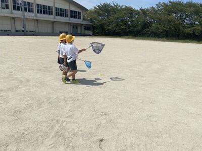 1年生はバッタやカマキリなどたくさんの虫を捕まえていました。