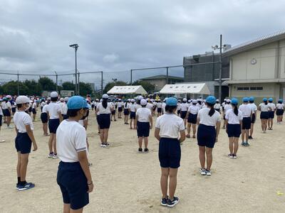 しっかりと気をつけをして、真剣にお話を聞いています。