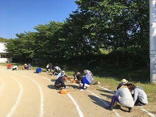 | ☆5月27日(土) ○運動会の準備があります 【5月26日(金)朝の時間;リレーの練習をする5年生】 ・4時間目、全校で運動会の準備をします。 ・1~4年生は4時間授業、5,6年生はお弁当を食べて午後も運動会の準備です。みんな頑張りましょう。 |
