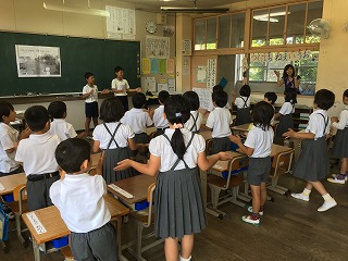 | ☆5月16日(火) ○内科検診がありました 【保健室;検診の順番を待つ2年生】 ・今日から木曜日まで内科検診がおこわなれます。 ○運動会の練習、がんばっています! 【1,2年生;玉入れ】 ・昨年度は震災の影響で、練習時間が確保できず、玉入れができませんでした。今年度は、赤組と青組で対戦します。 【5,6年生;組体操】 ・6年生がしている技を5年生が見ています。 ・一人技や二人技などの練習は終わり、ラストの大技に向けた練習に取り組んでいます。 ○3年生社会科「校区たんけんに行こう」③ ・校区の土地の使われ方を調べに、西方面(元町)へ行きました。これで校区の探検は終了。次の時間から、大きな地図に校区の様子をまとめます。 |