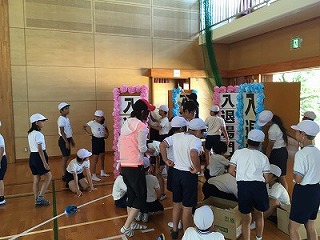 | ☆5月27日(土)② ○最後の運動会の練習をしました 【低学年;プログラム⑫「たのしくおどろうエアロビクス!!」】 【中学年;プログラム⑨「いずかしソーラン」】 【高学年;プログラム25「組体操 未来」】 ★本番を楽しみにおいでください。 ○全校みんなで運動会の準備をしました 【1年生;運動場フィールドの石ころ拾い】 【2年生;運動場トラックの石ころ拾い】 【3年生;運動場周辺のゴミ拾い】 【4年生;「いずかしの森」周辺の清掃】 【5,6年生;テント張り】 【5,6年生;テント張り②】 ・高いところは、肩車をして、ひもを結んでいました。組体操の技がテント張りで生かせましたね。 【5,6年生;午後も準備をしました】 ・入退場門に花をつけました。 【決勝係の準備】 【放送係の練習】 【校長先生のお話】 【無事に運動会の準備が終わりました】 ★5,6年生のみなさん、みんなのために準備をしてくれてありがとう。明日は、素晴らしい運動会にしましょう! |