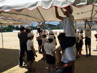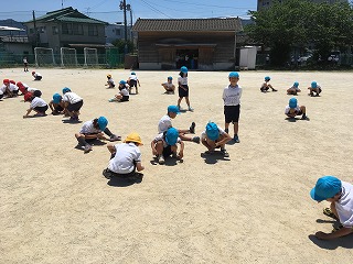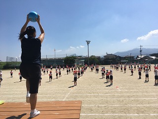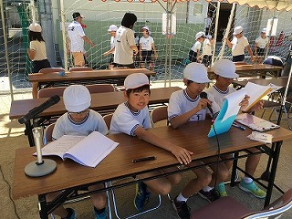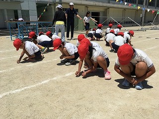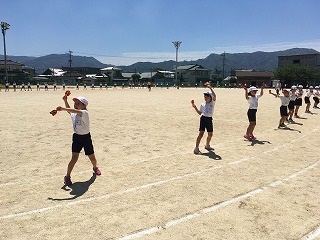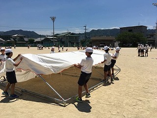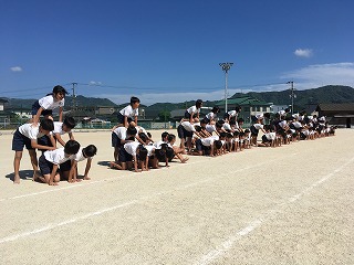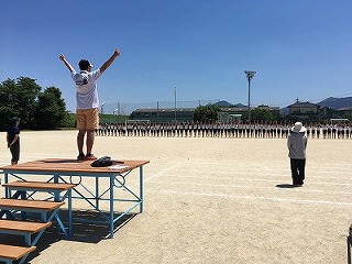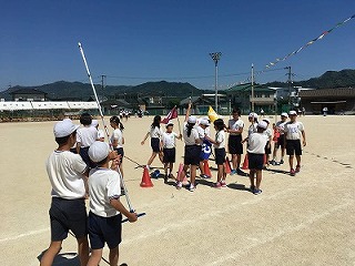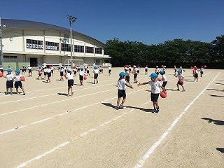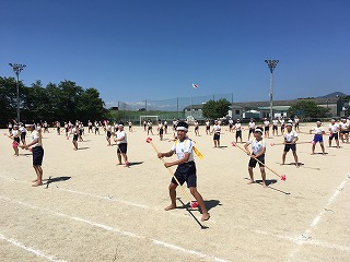 | ☆5月22日(月) ○暑い中、運動会練習をがんばりました ・今週末が運動会です。練習もいよいよ今週まで。暑さに負けず、がんばっています。 【2年生;全員リレーの練習】 【1年生;親子競技の練習】 ・運動会当日は、おうちの方とペアになって競技をします。 ・今日は、子どもたち同士で、1年生役とおうちの人役になって、やってみました。 【1,2年生;エアロビクスダンス】 ・みんなボールを持って、踊ります。 【全校練習;「植柳の盆踊」】 ・大きな円と小さな円になって踊ります。 ・保護者や地域の方も、ぜひ踊りに参加してください。 【全体練習;「口説き」を歌う子どもたち】 ・盆踊は、曲ではなく、「口説き」という歌に合わせて踊ります。 【「植柳の盆踊」;輪の中心の子どもたち】 ・「親子盆踊り教室」で習っている子どもたちは、一段と華麗に踊っていました。 【応援合戦の練習;赤団】 【応援合戦の練習;青団】 【5,6年生;「植柳の棒踊り」】 ・棒踊りの指導も、野﨑先生がしてくださいます。 【5,6年生;「組体操~未来~」の練習】 ・6人組で手をつなぎ、ぐるぐる回ります。 【5,6年生;動きのあるピラミッド】 ・曲に合わせて動きます。本番をお楽しみに! |