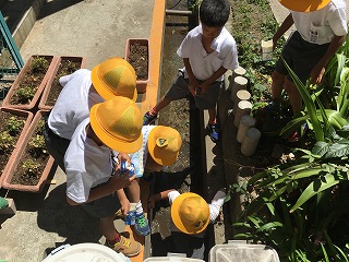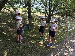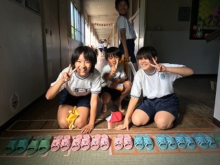 | ☆5月19日(金) ○登下校見守りの皆様「お世話になります集会」がありました ・植柳小児童の登下校を見守ってくださる方々をお招きした集会をしました。 【体育館;登下校の見守りをしてくださる方々】 ・朝早くから30名ほどの方が来校されました。 【SSP、防犯協会、交通安全協会の代表の方のお話】 ・子どもたちへ2つのお願い ①「大きな声であいさつをしましょう。」 ②「ありがとうの気持をもちましょう。」 【児童代表あいさつ;2年生】 ・「いつもありがとうございます。これからも交通安全に気をつけて登校します。」 ★登校だけでなく、下校の見守りもされる小学校は少ないそうです。見守りの皆様のおかげで、安心して登下校ができます。今年度もお世話になります。 ○昼休みの1年生の遊び ・子どもたちは休み時間が大好きです。1年生の遊びがかわいかったので、写真を撮りました。 【児童玄関前の大きな木】 ・「先生、すずしいでーす!」と声をかけてくれました。枝に分かれ目があって登りやすく、1m位の高さで安全です。 【中庭の岩石園】 ・石をどけると、小さなカニがいます。それを捕まえていました。 ・ジューシーパックで作った入れ物に水を入れ、カニを入れていました。 ○植柳小あれこれカメラ 【3,4年生運動会の練習】 ・運動場で「よさこいソーラン」の練習をしました。本番に向けてがんばりました。 【3年生社会科;校区地図が完成!】 ・校区探検を終え、大きな白地図にまとめました。 ・「北がわには、くま川がながれている」「西がわには、神社や寺が多い」など、たくさんの気づきがありました。 【4年生;花壇の花植え】 ・サルビアを植えました。旧講堂の前の花壇です。 |