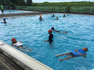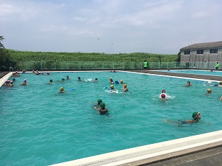 | ☆8月1日(火) ○植柳小のプール開放が始まりました ・プールの様子の写真です。 【小プールの様子】 ・子どもたちは70人くらい来ていました。 【大プールの様子】 ・ビート板やホースなど普段使えない道具を使って楽しそうに遊んでいました。 【楽しく泳ぐ子どもたち】 ★プール開放は、計8回あります。子どもたちだけでも来られます。プールで泳いで、暑さに負けない強い体をつくりましょう。 |