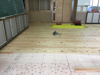 | ☆8月6日(日) ○体育館の耐震工事が終了しました。 ・体育館の工事は7月31日に終了し、使えるようになりました。 【LED照明になりました】 ・以前の照明より明るくなりました。 【バスケットゴールのつり下げ部分補強】 ○職員室の床改修工事は進行中です。 ・暑い中、改修工事が進められています。 ★8月1日(火) 【8/1;床の板が全て取り除かれました】 【8/1;職員室入り口】 【8/1;取り除かれた板など】 ★8月2日(水) 【8/2;職員室の後方】 ・骨組みの上にベニヤ板を張っていました。 ★8月4日(金) 【8/4;床板の設置】 ・ベニヤ板の上に床板を張っていました。 【8/4;床がどんどんきれいになっていました】 |