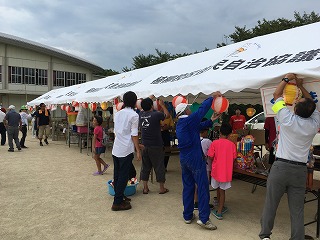 | ☆8月14日(月) ○ふるさと祭りは運動場?体育館? 【午前7時の話し合い】 ・天候が悪くなる予報のため、午後4時に集合し、準備をすることになりました。 ・運動場で行うか、体育館で行うか態度決定をして、準備をします。 |