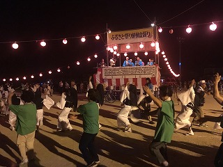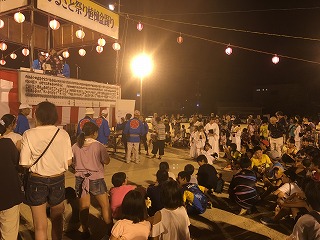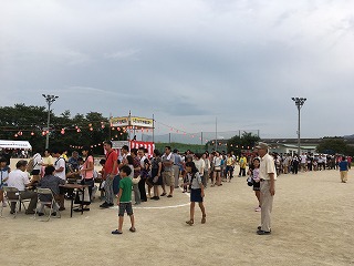 | ☆8月18日(金) ○ふるさと祭りが行われました④ ・8月14日(月)植柳小グラウンドで「第32回ふるさと祭り植柳盆踊り」が行われました。 ★「植柳の盆踊」の様子★ 【午後8時に始まりました】 【式典の様子】 ・式典が7時30分、盆踊りが8時からでした。 ・式典で、校長先生も紹介されました。 【みんなで盆踊り】 ・盆踊り保存会の方が内側を、参加された方たちが外側を踊りました。 【口説きの様子】 ・7名の方が交代で口説きをされました。 【保存会の子どもたちの踊り】 【体育館2階から見た盆踊りの様子】 ★実行委員会の方たちを中心に、校区の方と参加された方みんなで「ふるさと祭り」を行うことができました。お祭りをとおして、ご先祖様の供養とたくさんの方々との交流ができました。 |