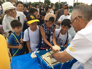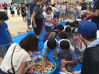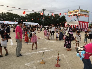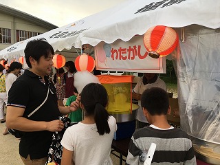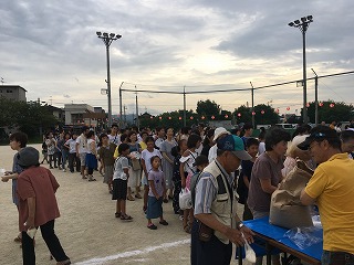 | ☆8月16日(水) ○ふるさと祭りが行われました② ・8月14日(月)植柳小グラウンドで「第32回ふるさと祭り植柳盆踊り」が行われました。 ・はじまりの頃の様子です。 ★プログラムから順に紹介★ 【お楽しみ抽選会の券をもらう行列】 ・先着1000名まで。長い行列でした。 【お菓子のつめっこ大会(小学生まで)】 ・消防団の方の出し物です。 【米のすくい取り大会(誰でも参加OK!)】 ・両手いっぱい上手にすくっていました。 【米のすくい大会も大行列でした】 ★出店★ 【フードコーナー】 ・からあげやフランクフルトなど、どれも100円で大人気。いつも売り切れます。 【射的;校長先生と教頭先生が担当されました】 【わたがし】 【かき氷】 【ドリンクコーナー】 【輪投げ】 ★地区や学校・幼稚園関係でお店を出しているので、安くてアットホームでした。いろいろなお店があり、お祭りが大いに盛り上がりました。 |