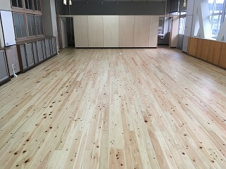| ☆8月9日(水) ○職員室の床の張り替えが終わりました ・明るい色合いの床板になりました。以前のように、床がペコペコとへこむこともなく快適です。 ★以前 ↓↓↓↓ ☆現在 【自然の板目がきれいです】 【更衣室は工事中です】 ・板にニスを塗り、ドアをつけたら完成だそうです。 |
