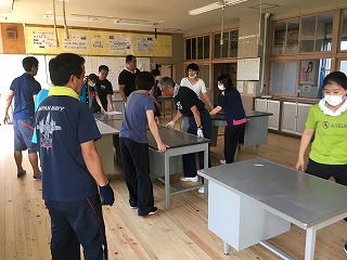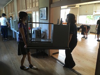 | ☆8月29日(火) ○棚や机を職員室へ運び入れました ・職員室の床改修が終わり、机や棚を入れました。 【きれいになった床】 ・床板は檜です。机や棚を入れる前の職員室。 【午前中は職員作業】 ・机や棚を出すのは40分と早かったのですが、入れるのは2時間半ほどかかりました。 【机の配置決め】 ・今回の引っ越しを機に、机の配置を新しく変更しました。配置決めに時間がかかりました。 【New職員室が完成!】 ・机の配置が一部変更になり、プリンターや湯茶コーナーが職員室後方へ移動しました。 【廊下もすっきり】 【職員室への運び入れ完了】 ・床がきれいな新しい職員室になりました。 ★明日は、業者さんによるLANケーブルやパソコンの設置があります。その後、職員でパソコン室の道具類をすべて運び入れ、すべての引っ越しが完了です。 |
