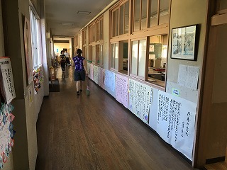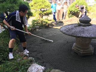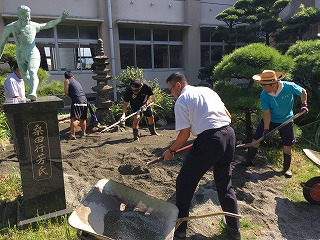 | ☆8月30日(水) ○宝暦萩原堤の夏休み練習が終わりました ・8月1日から8回計画された練習の最終日でした。 【植柳コミュニティーで練習】 【セリフを言う練習】 【台本を見ないで言いました】 ・前半は、その場に立って自分のセリフを言いました。後半は、動きも入れて練習しました。 ★みんな登場人物になりきって、気持ちをこめて言えました。夏休みの練習の成果が十分感じられる晴らしい演技でした。 ○中庭の池に石を入れました ・以前は小さな魚が泳いでいたのですが、大きな鳥に食べられてしまい、水漏れもあり、古びた水のない池になっていました。 ・そこで石を入れて「枯山水」にしました。 【職員作業で池に石を入れました】 ・午前中は、職員会議と校内研修。午後も校内支援委員会があり、一番暑い午後3時から開始。 【レーキで砂利ならし】 ↓↓↓↓↓ 【侘び寂びが感じられる枯山水に】 |