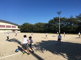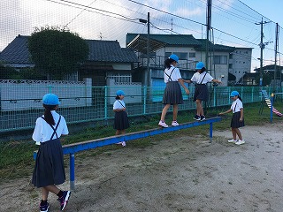 | ☆9月10日(日) ○9月8日金曜日の朝の植柳小 ・朝早い児童は、7時20分頃には登校しています。朝は8時10分まで遊べます。 【運動場では毎朝サッカー】 ・2年生、4年生、5年生がそれぞれサッカーをしていました。 【運動場の遊具で遊ぶ児童】 ・平均台でじゃんけんして遊んでいました。4年生の女の子たちです。 【野球をする6年生と1年生】 ・6年生はよく野球をしています。この日は1年生の男の子3人も一緒でした。 ★明日から1週間が始まります。265名全員が元気に登校できるといいですね。 |