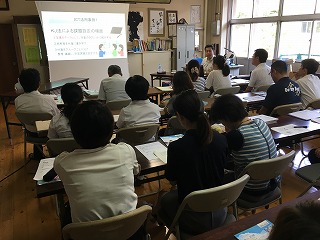 | ☆9月27日(水) ○三中校区合同研修会がありました。 ・第3回の研修会が、植柳小でありました。 【植柳小体育館;麦島小、三中の先生が参加】 ・三校と来賓の方々合わせて70名ほどの参加者でした。 【オリエンテーション】 ・研究主任がスライドを使って、本校の研究の取組を説明しました。 【5年教室;総合的な学習】 ・私たちのふるさと植柳に伝わる「棒踊り」 【5年担任樋口先生が授業をしました】 ★学習活動1「学習への課題をもつ」 ・めあて「これからの未来に向けた植柳棒踊り保存会の方々の思いや願いについて考えよう」 ★学習活動2「最も大切な思いや願いについて考える」 ・一人一台のタブレットを使い、保存会の方のインタビューを聴きました。 ・保存会の方の思いや願いを学習シートに書きました。 ・学習グループで学び合いをしました。 ・班ごとにホワイトボードにまとめ、全体で検討しました。 ・多くの児童が挙手し、活発な意見が出されました。 ★学習活動3「これまで大切に受け継いでこられた人々の思いや願いについて知る」 ・保存会の方のインタビューをVTRで見ました。 ・「私たちも、棒踊りを受け継いでいきます!」という、意見が出されました。 ・参加者が多く、5年教室に入りきらないため、隣の教室へ映像を送りました。 ・全体を映す固定カメラと、発言者や板書を映すカメラの2台で中継しました。 ★授業後・・・ ・棒踊り保存会の野崎先生から、授業の感想や子供たちへのメッセージをいただきました。 ・「みなさんにできることは、下級生へ棒踊りを伝えていくことです。これからも期待しています。」 ■授業研究会と講話 【授業を振り返り感想を言う樋口教諭】 【授業についてグループ協議】 ・三校の職員が班を作り、よかったところや課題について話し合いました。 【班で話し合ったことを発表】 ・青い付箋がよかったところ、赤い付箋が課題。 【講話;「伝統文化教育の充実に向けて」】 ・文部科学省の津田教科調査官にお話をしていただきました。 ★文部科学省の津田先生をはじめ、県教育委員会の恒松先生、八代教育事務所大住先生、八代市教育委員会有田先生、麦島小と三中の先生方と、多くの方々に本校の取組を見ていただきました。授業研究会やアンケートなど、先生方からいただいたお言葉をもとに、さらに研究を深めていきたいと思います。ありがとうございました。 |