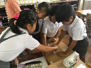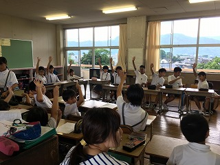 | ☆9月13日(水) ○着衣泳をしました(2年生) ・川や海に落ちたらうまく泳げるでしょうか?水着の上から服を着て泳いでみました。 【2年生;着衣泳の様子】 ・ペットボトルを胸に抱いて、浮いています。 【上手に浮かぶコツを解説】 【みんな上手に浮けました】 ・「らっこさんのようするといいよ」「空を見るといいよ」など、子どもたちはお互いに教え合って、上手に浮いていました。 ★水のシーズンは終わりますが、子どもたちにとって「命を守る」授業となりました。 ○植柳小あれこれカメラ 【1年生;生活科で虫取り】 ・「見て見て~!バッタ!」「カナヘビも捕まえたよ!」虫取りに夢中な女の子たちでした。 【3年生;社会科「買い物調べ」】 ・週末、買い物へ行ったお店を発表しました。第一位は「ゆめタウン」でした。 【2年生;生活科で砂遊び】 ・土の気持ちよさを手足で感じる授業。山やトンネルなど作って楽しそうでした。 【昼休み;ALTのジョー先生とドッジボール】 ・4年生と一緒にドッジボールを楽しみました。 【校内研修;伝統文化の講演】 ・熊本大学の安田先生(名誉教授)をお招きし、2回目の伝統文化のお話を聞きました。 ・植柳の盆踊りの由来や熊本の祭りの変遷などについてお話ししていただきました。遠路、ありがとうございました。 |