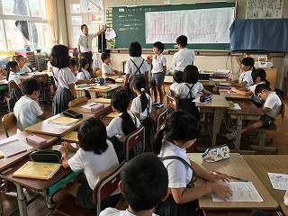| ☆9月12日(火) ○初任の先生の研究授業がありました ・4年2組の西村先生は初任の先生です。年間10回以上の研究授業をします。 ・2学期最初の研究授業をしました。 【算数「小数」の授業】 【0.1mの長さを両手でつくる子どもたち】 ・指導教官の先生をはじめ、多くの先生方に授業を見てもらいました。放課後には研究会をしました。 ・「たくさんの先生方が見てくださり、大変勉強になりました。(西村先生)」 ★多くの子どもたちが授業に集中して取り組んでいました。学習シートや掲示物に西村先生の工夫が見られ、落ち着いて授業する姿が素晴らしかったです。次回は9月19日に社会の研究授業をします。 |