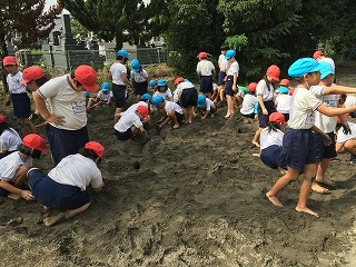 | ☆9月3日(日) ○ビーチバレー大会、健闘の3位! ・植柳小、麦島小、三中、植柳幼稚園、麦島幼稚園の3校2園の先生と保護者が集い、ビーチバレーをしました。 【麦島小体育館にて】 【植柳小PTAチーム】 ・楽しく和気あいあいと試合をすることができました。 【植柳小Cチームの試合開始!】 【表彰式】 ・植柳小学校Cチームは小川会長の足技や、上原先生の鋭いサーブなどの連携プレーで三位に輝きました。 ・校長先生率いる植柳小学校Aチームと教頭先生率いる植柳小学校Bチームは予選リーグで敗退。 【植柳小PTAチームで記念撮影】 ・結果です。 一位植柳幼稚園B 二位麦島小学校A 三位植柳小学校C ★ビーチバレーをとおして、楽しく幼保小中連携ができました。連携の輪もぐっと大きく広がりました。皆さん、お疲れ様でした。 |