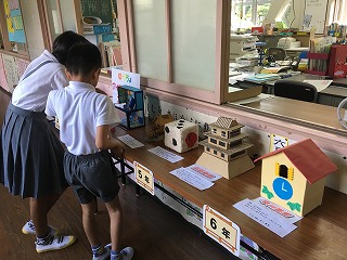 | ☆9月9日(土) ○自由研究の作品を展示しています ・夏休みの宿題「自由研究」を、理科室横の廊下に展示しています。 【3年生から6年生まで取り組みました】 【個人やグループでまとめました】 【3年理科;ゴムの力を利用したおもちゃ】 |