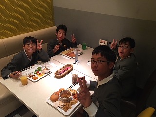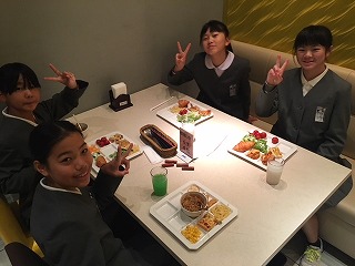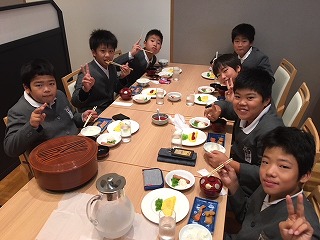 「みんな朝から完食(^^)40人全員元気です。8時に出発します。グラバー園に行ってきます!」