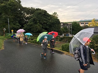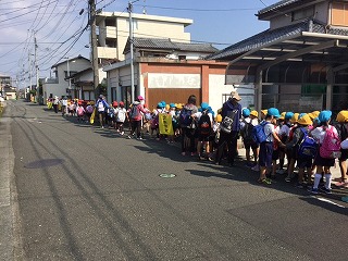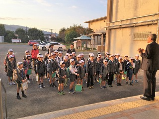 ・午前7時40分、6年生40名全員が修学旅行へ出発しました。