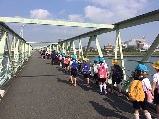 ・5時45分ごろ、40名全員元気に植柳小に帰ってきました。たくさんのお土産を手に、みんな素敵な笑顔でした。