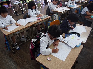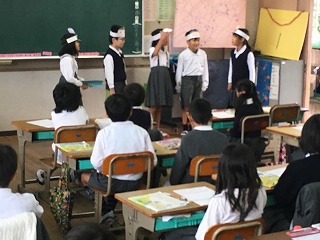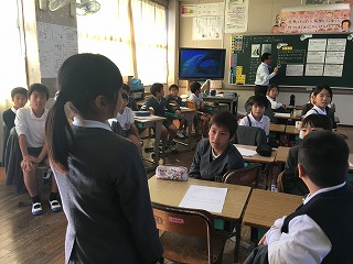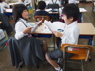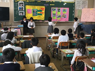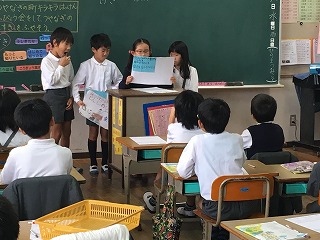 ・社会科見学で学んだことをもとに発表をします。大きな声が出ていました。