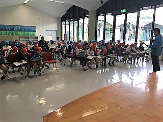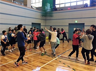 ・今年のいずかし集会は、クラブ活動の発表もあります。パソコンクラブ、スポーツクラブが体育館で練習していました。