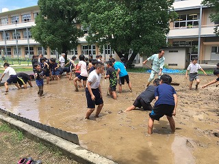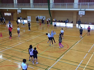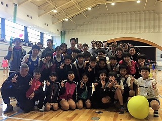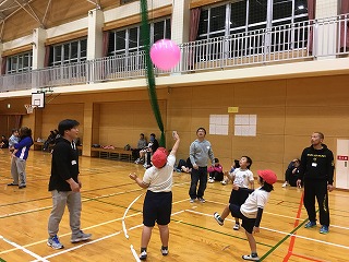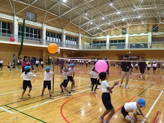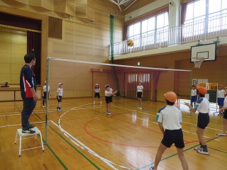 ・6年生21名とおうちの方で、和気あいあいで楽しくプレーできました。2チームとも1勝1敗で、とても楽しかったです。(6年担任廣岡先生談)