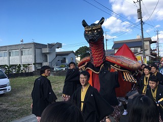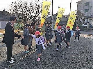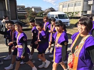 【迎町;交通安全に気を付けて、歩いて八代宮へ】