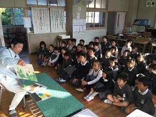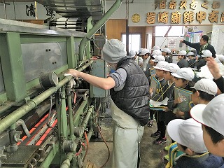 ・植柳小の廊下は板張りで、長いです。3年生の男の子が、二人で楽しそうに雑巾がけをしていました。