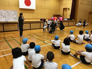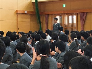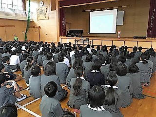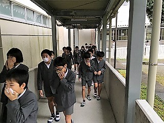 ・校内放送が流れ、1分間ほどの揺れを想定し、避難しました。みんな落ち着いて行動できました。
