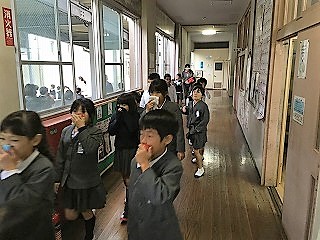 ・トイレから出てきた女の子が、自分のスリッパだけでなく、並んでいなかったスリッパもきれいにしていました。当たり前のように、自然にできる所がうれしいですね。さすが植柳小の子どもです。