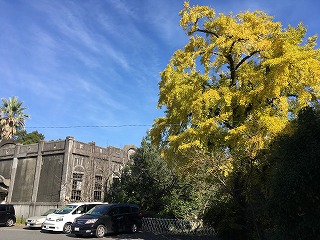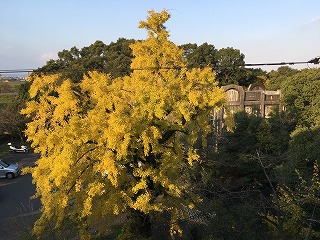 ・何度もホームページで紹介してきた大きな銀杏の木。今日はひときわきれいでした。2年2組の子どもたちが記念写真を撮りました。