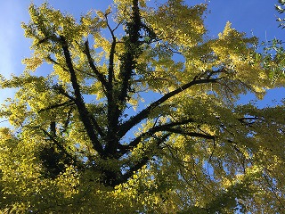 ・白鳥の池にかかる橋の両側に銀杏があります。ここを通って駐車場へ行くのですが、黄色のカーテンのようで、とてもきれいです。