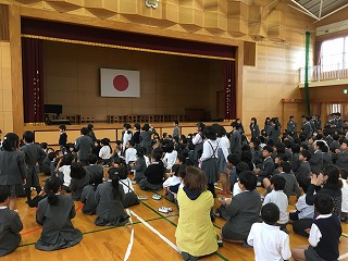・今日も全学年、体育館で練習をしました。3つの学年を紹介します。