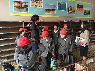 ・夕方は暗くて危険です。「ひのくにピカピカ運動」のポスターを使って話されました。