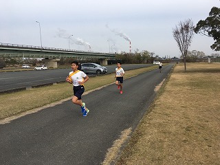 ・来年1月27日(土)球磨川河川敷スポーツ公園で、八代小学生駅伝大会が行われます。大会に向け、練習をしました。