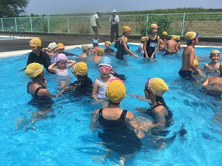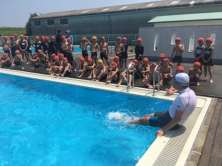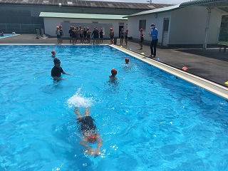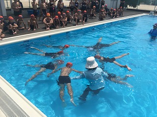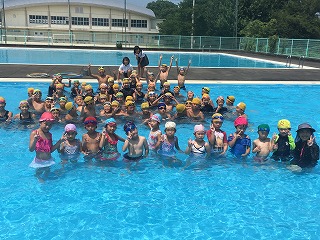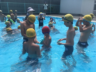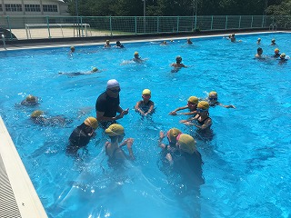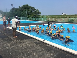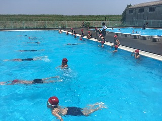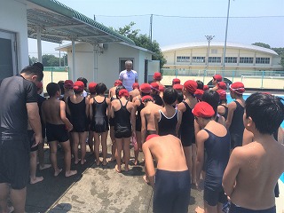 | ☆平成30年7月23日(月) ・泳ぐ力をつけるための水泳教室をしました。25m泳げない児童、息継ぎや泳ぎ方がもう少しの児童など、4年生以上が参加しました。 【開会式:校長先生の話】 ・「水泳教室をとおして『水泳を好きになってください。』『水泳の自信をつけてください。』」 【水泳教室の様子】 ・児童33名が参加しました。6年生1名、5年生16名、4年生16名。指導する先生たちは14名でした。 【泳力調査(はじめ)】 ・初めに、どれくらい泳げるか、距離を測定しました。 【泳げた距離を報告】 ・25m以上泳げた児童は、11名でした。 【個別指導:大プール】 ・泳げる距離で4つのグループに分かれました。①25m以上、②24~20m、③19~10m、④9m以下、それぞれ3~4名の先生が担当になって指導しました。 【個別指導:小プール】 ・泳げない児童に応じた指導をしました。バタ足の練習をする子どもたちです。 【泳力調査(終わり)】 ・個別練習が終わった後、また泳げる距離を測定しました。 ・25m泳げた児童が11名→18名になりました。泳げる距離が、5mから17mになった児童もいました。みんなよく頑張りました。 【水泳教室1日目終了】 ・泳げる距離が伸びたり、泳ぐコツをつかんだりして、たくさんの児童が自信をつけた1日目でした。 |