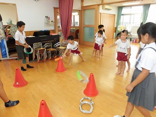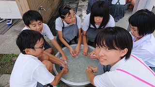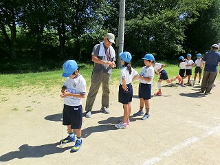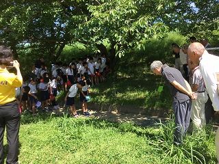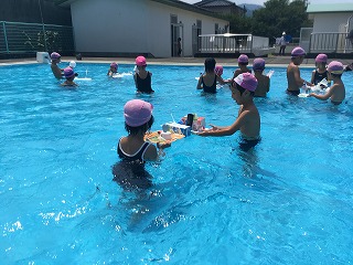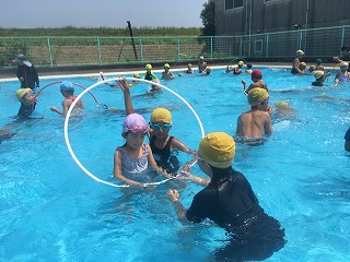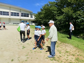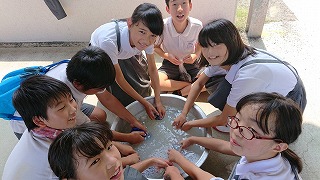 | ☆平成30年7月17日(火) ・学校近くにある植柳幼稚園から、年長児童12名がプールに来てくれました。 【園長先生のお話】 【5年生と幼稚園児】 ・50名以上の5年生に戸惑った園児でしたが、徐々になれ、お兄さん、お姉さんたちと楽しく活動できました。 【宝探しゲーム】 ・水道ホースを切ったもの(宝)を、たくさん拾いました。 【フラフープで遊びました】 ・フラフープをくぐったり、みんな中に入ってメリーゴーランドのように回ったりして、遊びました。 【みんなで記念写真】 ・45分と、短い時間でしたが、みんな楽しく活動できました。 ☆最後にたくさんの子どもたちが今日の感想を発表しました。 5年生「早く小学校に来てほしいです。」 5年生「泳いで上手でした。」 園児「初めてゴーグルをはずして、目を開けられました。」 〇植柳小あれこれカメラ 【3年体育;水泳】 ・校長先生が、特別講師として授業。「いろいろな浮き方」を教えてもらいました。 【スカイダイビング浮き】 ・「大の字浮き」をグループですると、スカイダイビングのような形になります。このあと、各グループで練習しました。 ☆6年1組家庭科「洗濯」の授業の様子です。 【タライの中でゴシゴシ!】 ・昼休み遊んだ後、5時間目に汚れた靴下を洗いました。 【学校田】 ・5年生がお世話しています。大きくなりました。 【30㎝くらいになりました】 |