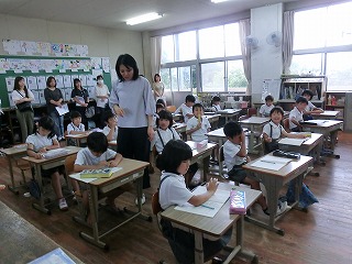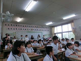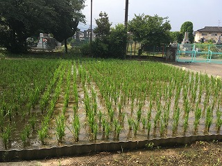 | ☆平成30年7月10日(火) ・6校時、フライデーゼミナールと、教育サポートセンター特活部会の授業研究会を兼ねた、学級活動の研究授業がありました。 【6年1組教室】 ・議題「思いをつなぐ 6の1オリジナルソングを作ろう」で、話し合いをしました。 【教育サポートセンターの先生方が参観】 ・オリジナルソングに「どんな言葉をいれるか?」「どんな係が必要か?」など話し合いました。 〇稲の成長です(中干しをしました) ・6月27日に田植えをし、ちょっと早いですが、中干しをしました。 ・田んぼの水を抜いて、ヒビが入るまで乾かすのが中干しです。土中に酸素を補給して根腐れを防ぎ、根を元気にします。 【昼休みの田んぼ】 ・稲を育てている5年生が「なんで水がないのかなあ?」とつぶやいていました。 【大きく成長した稲】 ・25㎝くらいに成長しました。朝、JAの職員の方も、お世話をしに来られていました。ありがとうございました。 |