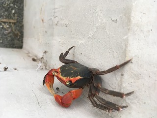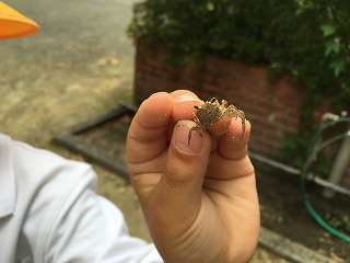 | ☆平成30年7月9日(月) ・昨日までの大雨とは打って変わって、よく晴れた暑い一日でした。梅雨明けしました。夏休みまで、あとわずかですね。 【旧講堂と厳橿の森】 ・クマゼミ、ニイニイゼミが鳴いていました。 【カニも大量発生】 ・一年生が、夢中になって捕まえていました。 【大きいカニもいました】 ・体育館へ行く途中で遭遇。8㎝くらいで、きれいな色をしたカニでした。 |
