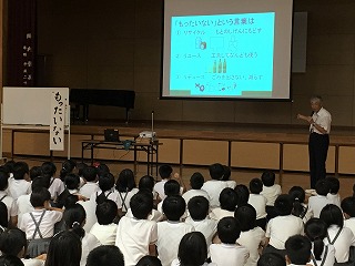 | ☆平成30年7月6日(金) ・昼休みのあと、体育館で全校集会がありました。 ☆校長先生の話 【7月の全校集会】 ・「環境について」の話でした。 【前半はクイズ】(すべてH29年度の結果より) ・「222」…植柳小から出たゴミ袋の数です。ゴミ袋1枚50円として、50×222=11,100円かかりました。 ・「307万」…年間の電気代です。7月が一番多かったです。どうしてでしょう?エアコンや扇風機を使うからです。 ・「189」…給食の残菜の重さです。一日約1キログラムの残菜があります。 【後半は「もったいない」の話】 ・ノーベル平和賞を受賞したケニア人女性、ワンガリ・マータイさんは、「MOTTAINAI(もったいない)」を全世界に発信し、環境保護の活動につとめました。 ・「もったいない」とは…①リサイクル(もとのしげんにもどる)、②リユース(工夫して何度も使う)、③リデュース(ごみを出さない、減らす) 【これからみんなでできることは?】 ・植柳小でできることは何か、全校で考えました。 ・「水道の水をだしっぱなしにしない。」「使わない電気は消す。」「給食の残菜を減らす。」「ごみを分別する。」などがあることを確認しました。 ☆7月の言葉「もったいない」を合い言葉に、節電やリサイクル、給食の完食など、一人一人が心がけていきたいですね。 〇フライデーゼミナールがありました(5年1組) ・フライデーゼミナールとは、全職員が取り組む、自由な参観形式の研究授業です。5年1組の廣岡先生が、体育の授業を行いました。 【職員室の掲示板より】 ・子供たちが「体を大きく動かす」ための手立てについて提案した、体育の授業でした。 【体育館;3時間目「体育」】 ・「みんなで踊ろう たいへんだ!ワールド」(表現活動) ・即興で、「嵐」の動きを表現しました。みんなで回ったり、上下に揺れたり、大きな動きが見られました。 【新聞紙になってみよう!】 ・教師が持った新聞紙の様子を、体を使って表現しました。 【授業のまとめ】 ・自分の学びを学習シートに記入しました。 【職員室;放課後にミニ授業研究会】 ・「模範になる先生の運動量が多く、子供たちも一緒になってたくさん動いていました。」「テンポとリズムがよく、みんな楽しそうに活動していました。」 |