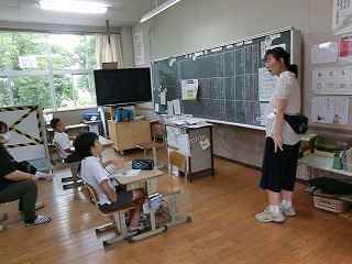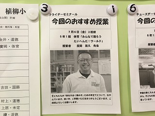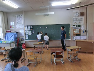 | ☆平成30年7月19日(木) ・植柳小のクラブ活動は9つあります。すべてのクラブ活動にGT(ゲストティーチャー)に来ていただいています。 【①将棋クラブ】 ・「今日の将棋はおもしろかったあ。」と、4年生の男の子が話してくれました。いつもは一人で将棋をしているそうで、友達との対戦や駒の動かし方を教えてもらって、楽しかったそうです。 【②折り紙クラブ】 ・植柳小のクラブ活動は、伝統文化を取り入れたものがたくさんあります。 ・耳を澄ませて、上の句をしっかりと聞いています。素早くとれたでしょうか? 【④太鼓クラブ】 ・伝統文化教室で太鼓の練習をします。暑い教室から、熱い演奏が学校中に響き渡りました。 【⑤茶道クラブ】 ・生活科室が素敵な茶道室に様変わり。厳かな雰囲気のなか、みんなでお茶を味わいました。 【⑥合唱クラブ】 ・日本の代表的な民謡、熊本が誇る民謡「おてもやん」の練習をしました。 【⑦手芸クラブ】 ・家庭科室で行いました。裁縫で、バッグなどの小物を作りました。 【⑧スポーツクラブ】 ・ハンドボールがご専門の先生に来ていただき、ハンドボールを指導していただきました。 【⑨パソコンクラブ】 ・ICT支援員の先生と一緒にキーボード練習をしました。次回から、プログラミング学習をしていきます。 〇植柳小の朝の様子 ・暑さに負けず、元気に遊ぶ子供たちがたくさんいました。朝8時頃の気温は28度でした。 【運動場】 ・運動場が使えない日以外は、必ずサッカーをする5年生。学校一の元気学年です。 【運動場】 ・1年生も元気にサッカー。6人くらいでやっていました。 【中庭】 ・ちょっと陰があり、涼しい中庭です。「いーち、にー、さーん…」と数を数えながら、1年生がブランコをしていました。 【家庭科室の横付近】 ・3年生の男の子たちが、クマゼミをとっていました。「先生、メスをつかまえました。オスを捕ってください。」と言われましたが、すごく高い所にいたので無理でした。 【南門であいさつ運動】 ・朝休みの時間ですが、運営委員会の子供たちは委員会の仕事をしていました。 ・「おはようございます!」とハイタッチをして、登校する友達に元気を分けていました。毎週、朝早くから、学校のみんなのためにありがとう。 【南側の駐車場】 ・10時半頃、用務の先生が除草作業をされていました。夏休みを前に、駐車場付近がすっきりなりました。ありがとうございます。 〇1学期最後の水泳の授業でした ・暑い学校の中で、唯一涼しくなれるプール。1学期最後の水泳の授業がありました。 ・泳ぐ練習のほかに、浮き方、潜り方の練習をしました。 【4年生】 ・平泳ぎの練習をしました。最後に25mに挑戦。たくさんの子供たちが泳げるようになりました。 【水泳特別講師の校長先生】 ・ほぼすべての学年の水泳の授業に来てくださり、専門的な指導をしてくださいました。今日は、3,4,5時間目で指導をされました。 ・ありがとうございました。 |