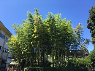 | ☆平成30年7月7日(土) ・「空へ 若竹の悩みなし」 種田山頭火(1882;明15~1940;昭15) 【資源置き場前の掲示板】 ・俳人、種田山頭火(たねださんとうか)は、日奈久の織屋という木貸宿に3泊して、句を詠みました。 【植柳小の竹林】 |