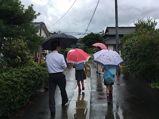 | ☆平成30年7月3日(火) ・台風7号の影響が心配されましたが、授業参観がありました。 ☆1年生 【1年1組;算数「ひきざん」】 【1年2組;算数「ひきざん」】 ☆2年生 【2年1組;算数「どんな計算になるのかな」】 【2年2組;算数「どんな計算になるのかな」】 ☆3年生 【3年1組;総合的な学習の時間;「植柳学」】 【3年2組;総合的な学習の時間「植柳学」】 ☆4年生 【4年教室;国語「一つの花」】 ☆5年生 【5年2組;家庭「はじめてみようソーイング」】 ☆6年生 【6年1組;国語「学級討論会をしよう」】 【6年2組;国語「物語の山場を予想して読もう」】 ☆あすなろ学級 【あすなろ1組;国語「漢字の広場」】 【あすなろ2組1;国語「漢字の広場」】 【あすなろ2組2;国語「漢字の広場」】 【あすなろ3組;国語「うれしいことば」「漢字の広場」】 ☆学校評議員会 【校長室】 ☆一斉下校(悪天候のため) 【体育館】 ・ランドセル、靴、傘を持って体育館に集合しました。 【保護者のところへ移動する1年生】 ・学級懇談会は中止。荒天ため、保護者と下校しました。 【先生たちと下校】 ・保護者が来られなかった児童は、町内児童会の担当の先生と歩いて帰りました。 ☆悪天候の中、授業参観においでいただき、ありがとうございました。 |