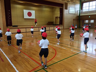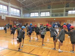 | ☆平成30年12月12日水曜日 〇リズムビクスがありました ・これまで「スポーツ教室」と呼んでいましたが、「リズムビクス」として運動をしました。 【低学年;リズムビクスの様子】 ・リズムビクスとは、「ストレッチや筋トレ、有酸素運動を行うエクササイズ」です。園田先生が指導して下さいました。 ・速いテンポの動きでも、みんなノリノリで踊れていました。 【高学年;リズムビクスの様子】 ・低学年に比べて、動きが多い運動をしました。毎年しているので、みんな上手に踊れました。 |