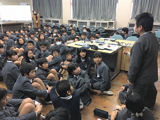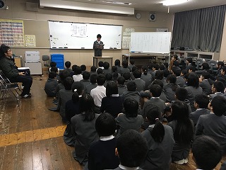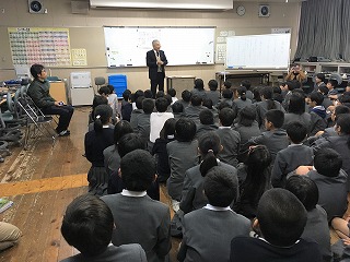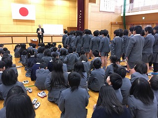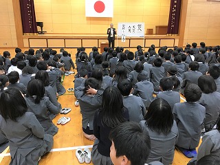 | ☆平成30年12月19日水曜日 〇伝統文化を学ぶ校内研修がありました(職員) ・熊大名誉教授の安田宗生先生を校内研修にお招きし、伝統文化の講話を聞きました。 【校長室;講話】 ・「伝統文化の継承~伝統文化を衰退させないように継承していくには、どのような施策を講じていけばよいのだろう~」と題して、1時間お話をしていただきました。 ★学校でできることは、総合的な学習の時間や行事を通して、伝統文化を大切にする心を育てることだと話されました。 ★伝統文化を学ぶことは、自他を大切にし、ふるさと、我が国、そして世界を大切にすること、世界の平和につながるとも話されました。 〇みんな走っています! ・八代小学生駅伝大会や校内持久走大会に向けて、みんな毎日走っています。 ・校内のサーキットコースを走りました。1周600m余りのコースで、3周走りました。朝早くから頑張りました。 ・体育の時間に練習をしました。5年生は2㎞走ります。昨年度から500m長くなりましたが、みんな完走できました。 ・3年生は1,5㎞走ります。ちなみに、走る距離は、1,2年生が1.0㎞、3,4年生が1.5キロメール、5,6年生が2㎞です。みんな頑張ろう! |