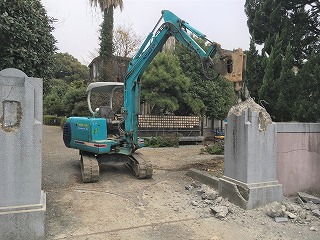 | ☆平成30年12月21日金曜日 〇SSPの方の帽子ができました ・毎日の登下校でお世話になっているSSPの方の帽子が新しくできました。 【紺色のキャップ】 ・「UYANAGI SSP Safety School 」と書いてあります。かっこいいです。 【給食時間に帽子を紹介】 ・下校時、子供たちが見慣れない帽子に驚かないよう、校長先生が紹介。SSPの帽子について、学校放送と各クラスへ出向き、子供たちに説明されました。 ★SSPのみなさま、これからもよろしくお願いします。 〇正門の拡張工事(2日目) ・正門の工事が進み、門がなくなりました。 ★①午前10時★ 【重機で整地】 ・正門の右がなくなり、堀削った地面を整地していました。 ・「八代市立植柳小学校」「栽柳園」「寄贈 昭和三十四年度」と書いてあります。学校で大切に保管します。 ★②午後1時★ 【正門の左側の門】 ・ドリルで壊されていました。 ★③午後2時★ 【左側の門がなくなる】 ★④午後4時★ 【2日目の工事終了】 ・正門がなくなってしまいました。どのような門ができるのでしょう。 【ありがとう、さようなら正門…】 |