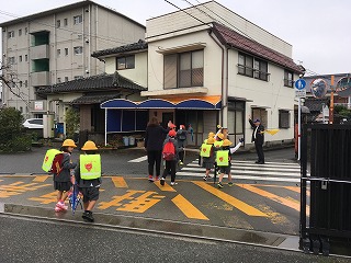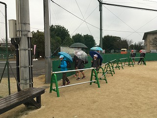 ・駐車場側の通路は、たくさんの車の出入りがあって危険です。雨の日はグランドがぬかるんでいて大変ですが、安全に気を付けて歩きましょう。