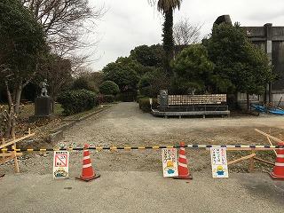 入り口の木を切りましたので、二宮金次郎さんもよく見えます。