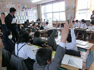 「学習(の鐘)を頑張る!」に手を挙げた児童がたくさんいました。